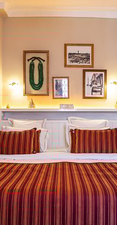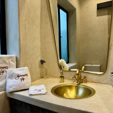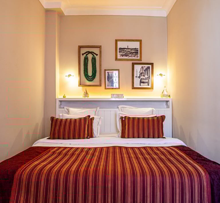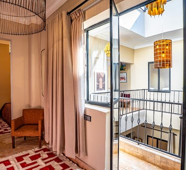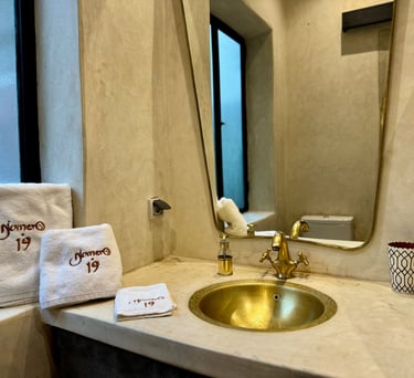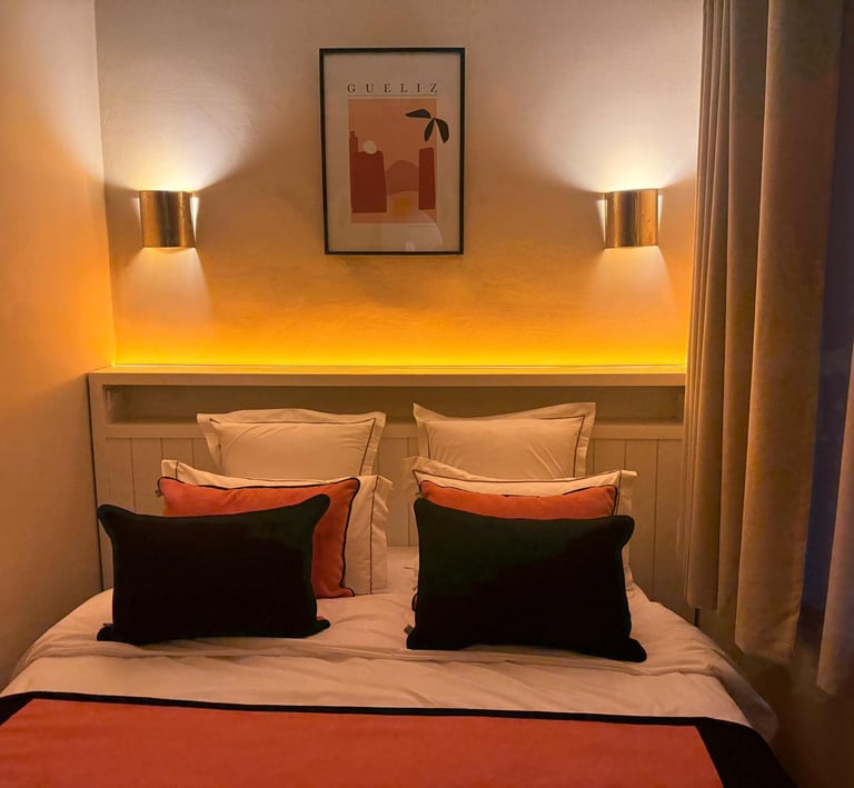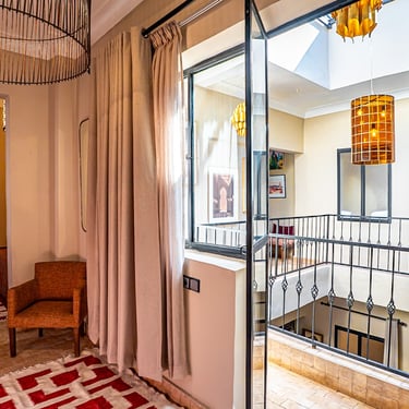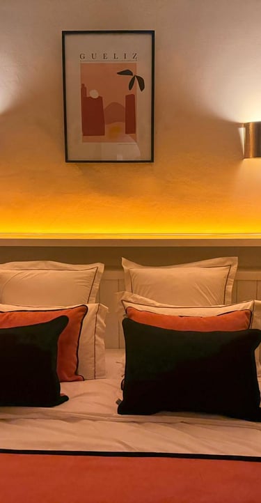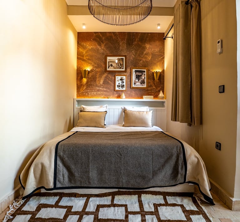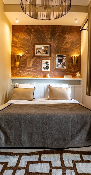 Warm, inviting space with traditional Moroccan patterns and soft pistachio tones.